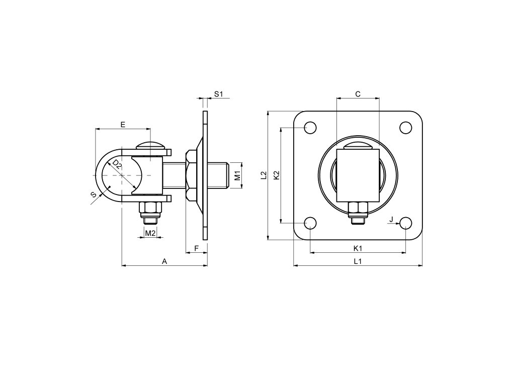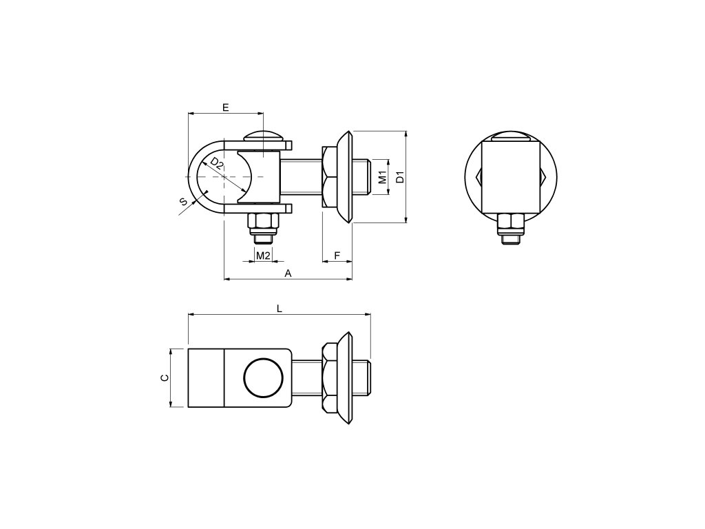 Pant regulovatelný osový s třmenem M24 pant s třmenem m24, osový závěs brány, navařovací oko, CAIS řada 40