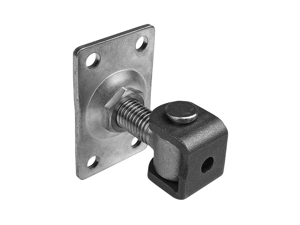 Regulovatelný pant s plotnou od výrobce CAIS slouží k uchycení křídel bran na zděné pilíře nebo ocelové sloupy. Systém umožňuje nastavit polohu křídla pomocí závitové tyče, což zajišťuje vyrovnání konstrukce při montáži i během provozu.