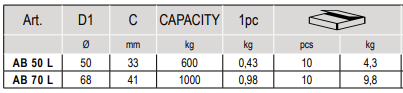 Vysoká zatížitelnost: pant využívá masivní kuželíkové ložisko konstruované pro vysoký tlak. Výběr správné varianty závisí na hmotnosti křídla. U modelu AB 50 L je únosnost 600 kg na jeden kus a u většího modelu AB 70 L dosahuje únosnost až 1000 kg na jeden kus.